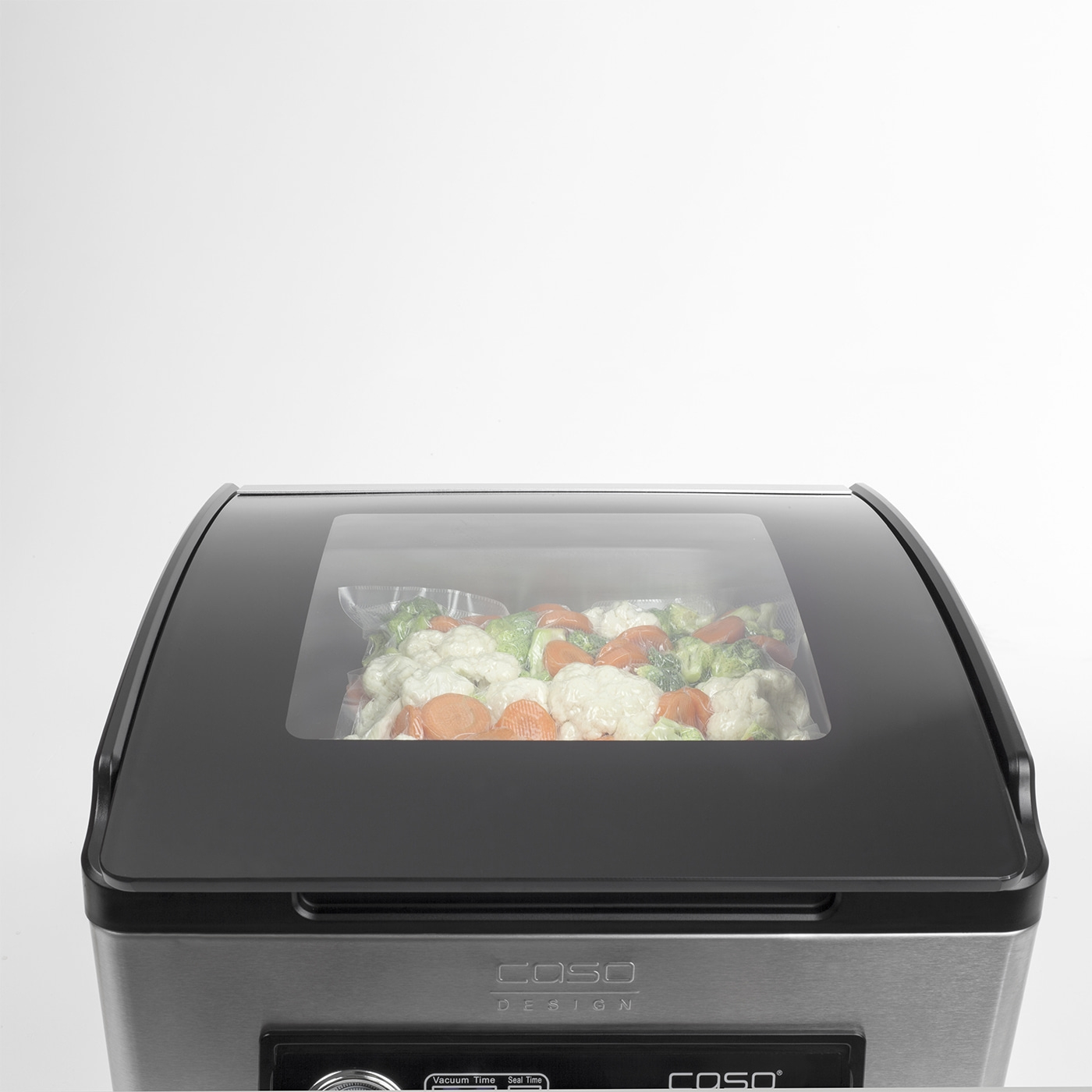 Artikel-Nr.:731.1418.00Downloads:Masse (BxHxT):365x235x410 mmKammergrösse (BxHxT):305x100x322 mmGewicht:12 kgSpannung:220-240V~, 50HzPrüfzeichen:GS, CESteckertyp:SchukoKabellänge:140 cmMaterial:Glas, EdelstahlBedienung:Soft Touch PanelMax. Unterdruck:0,95 barSchweissnaht:Doppelt, Schweissnaht 29 cm (für Beutel bis 30 cm)Vakuumpumpe:70 L / min.Produkteigenschaften:Temperaturüberwachung, Schweisszeitregulierung, Behälterfunktion, Fortschrittsanzeige, Marinierfunktion, SVS-Vakuumregulierung, 4-Kolben‐Vakuumpumpe