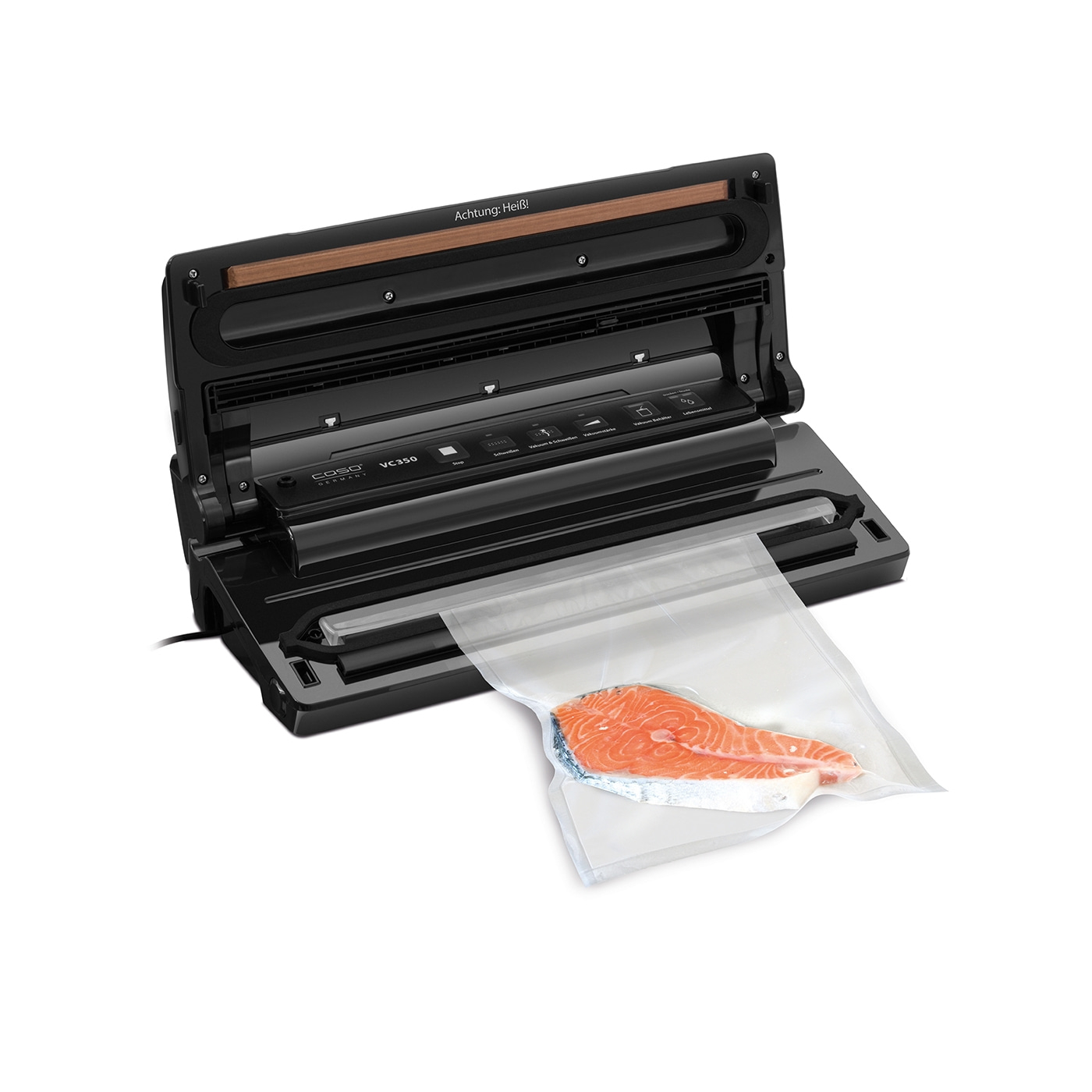 - Die regulierbare Schweisszeit ist die optimale Vakuumfunktion für feuchte oder trockene Lebensmittel - besonders für Sous-Vide-Garen geeignet