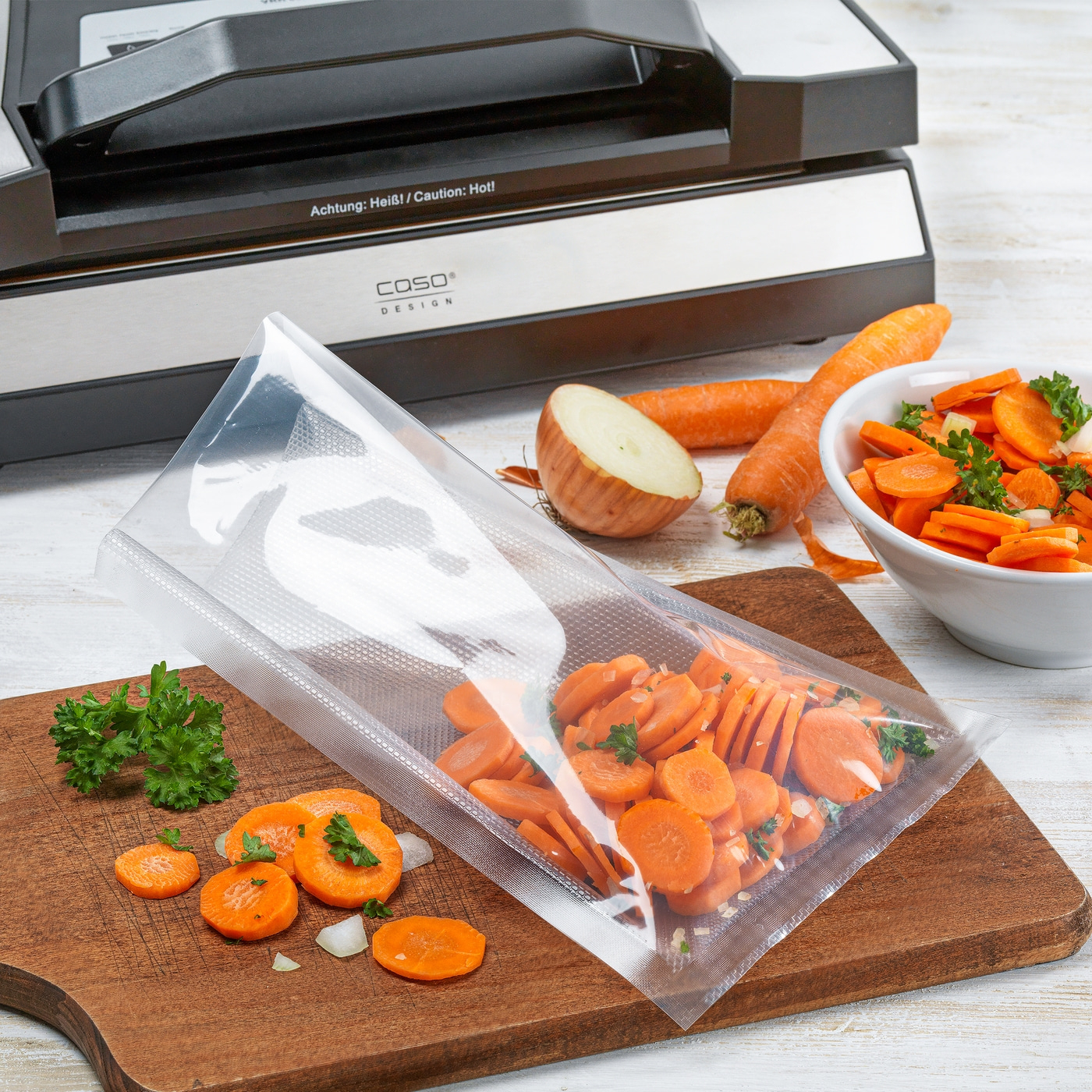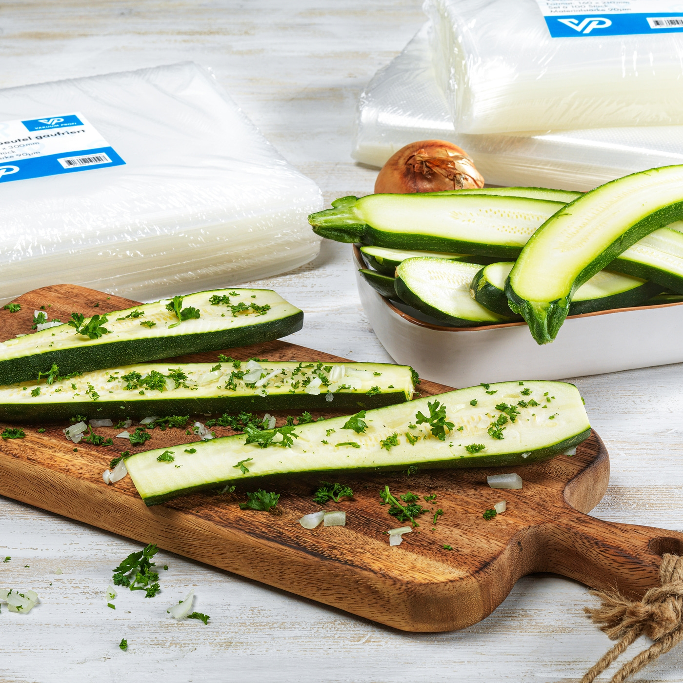 Beutel mit feiner Rippenstruktur für 100% Dichtigkeit. Gefriergeeignet Materialdicke 90my. BPA frei